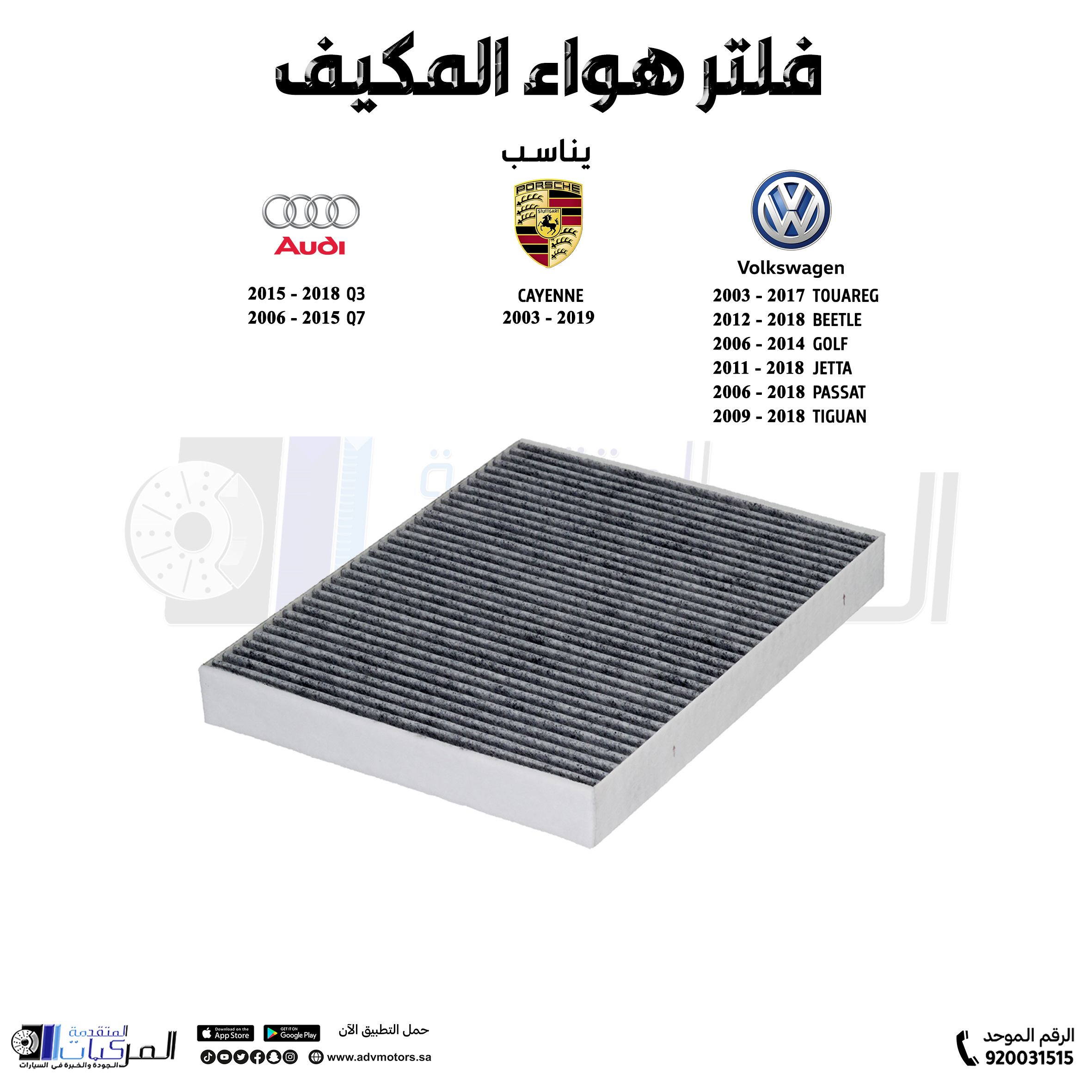 فلتر هواء المكيف اودي Q3 / Q7 / فولكس واجن طوارق / باسات / بيتل / جولف / جيتا / تايجوان / بورش كايين (2003-2018)