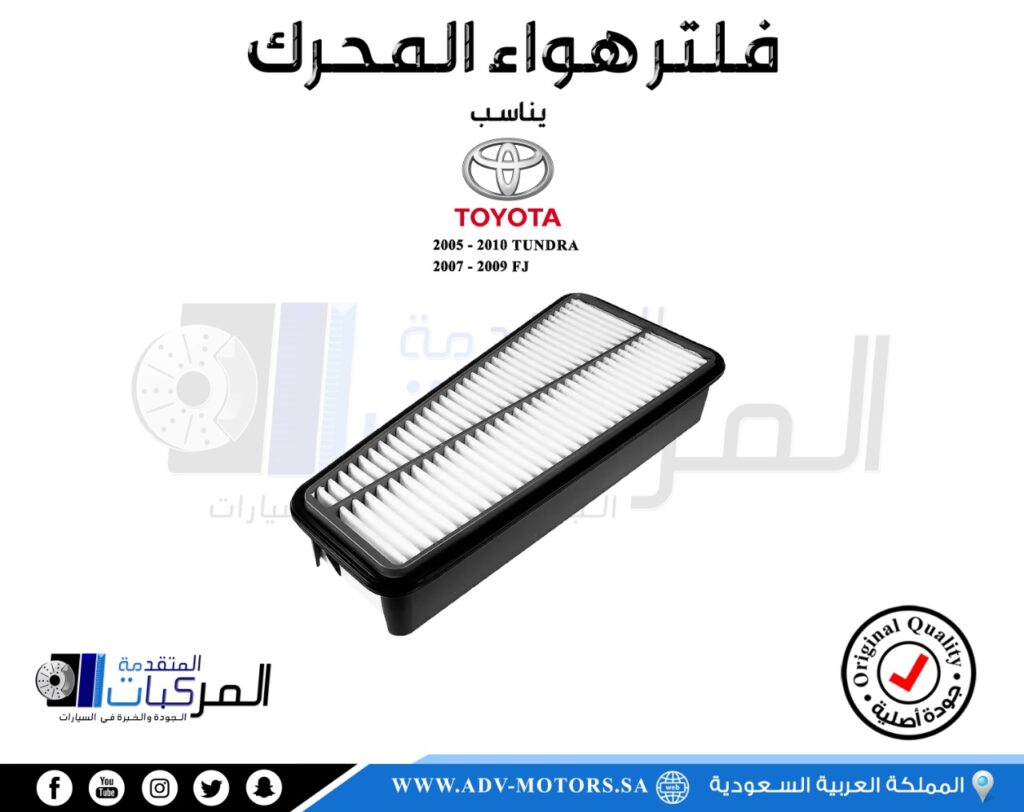 | متوافق | فلتر هواء المحرك اف جي 07-09, فلتر هواء المحرك برادو 03-09, فلتر هواء المحرك تندرا 05-10, فلتر هواء المحرك فورتشنر 03-09, فلتر هواء المحرك فورتشنر 10-20, فور رنر 03-13 |
